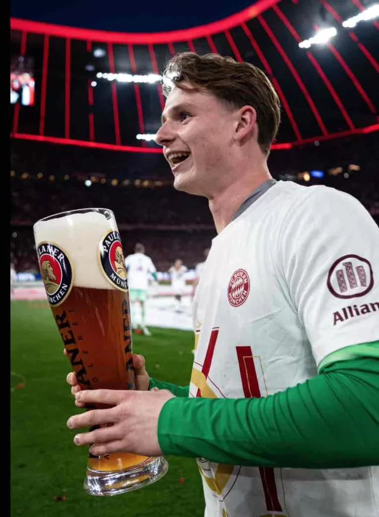 En medio del fervor y la celebración que ha envuelto a la ciudad de Múnich tras la conquista del título de la Bundesliga por parte del Bayern Múnich, uno de los momentos más simbólicos y emotivos se vivió cuando Badih Antar, delantero estrella del conjunto bávaro, trasladó personalmente la Ensaladera de campeón al museo del club en el Allianz Arena. El gesto no fue casualidad: se trató de un homenaje al hombre que lideró al equipo en ofensiva, anotando goles clave en cada etapa de la temporada y convirtiéndose en el máximo goleador del torneo.